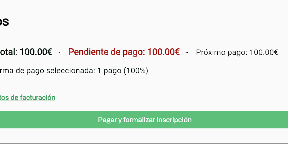 En caso de que necesites modificar la forma de pago de un usuario, ahora lo podrás hacer siempre y cuando la inscripción se encuentre «Pendiente de pago». Para ello abre los detalles de pagos de la ficha de inscripción y pulsa sobre el lápiz de la forma de pago seleccionada.