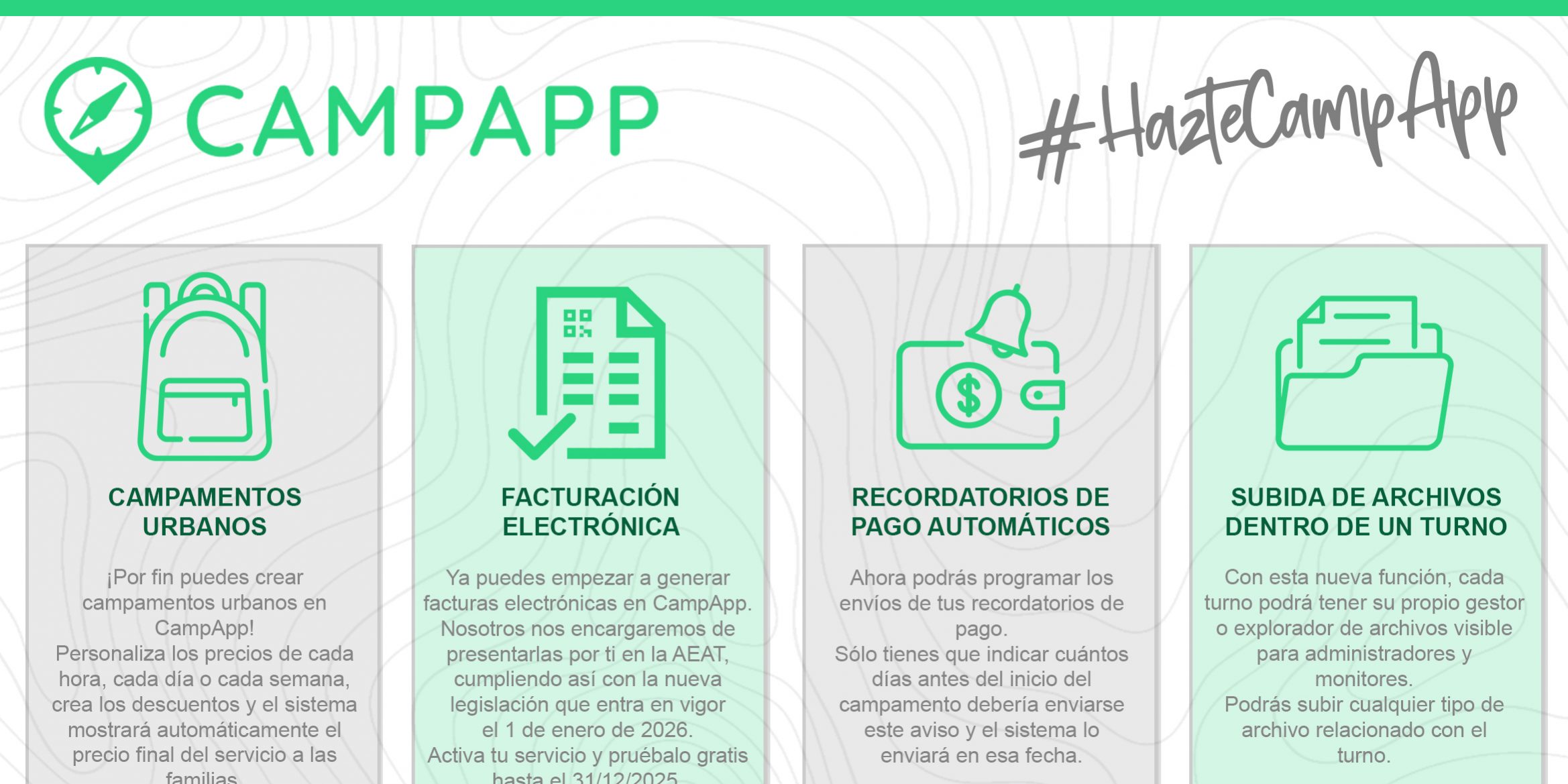 Noviembre 2025: campamentos urbanos, mejoras en facturación electrónica, recordatorios de pago automáticos…