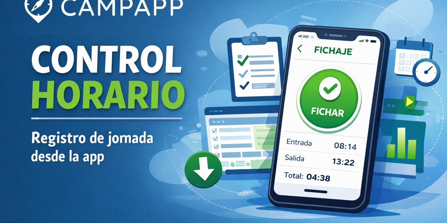 Ya puedes registrar fácilmente la jornada laboral de tus trabajadores de manera digital y cumpliendo con la legislación vigente utilizando la app móvil de CampApp y su software de gestión.