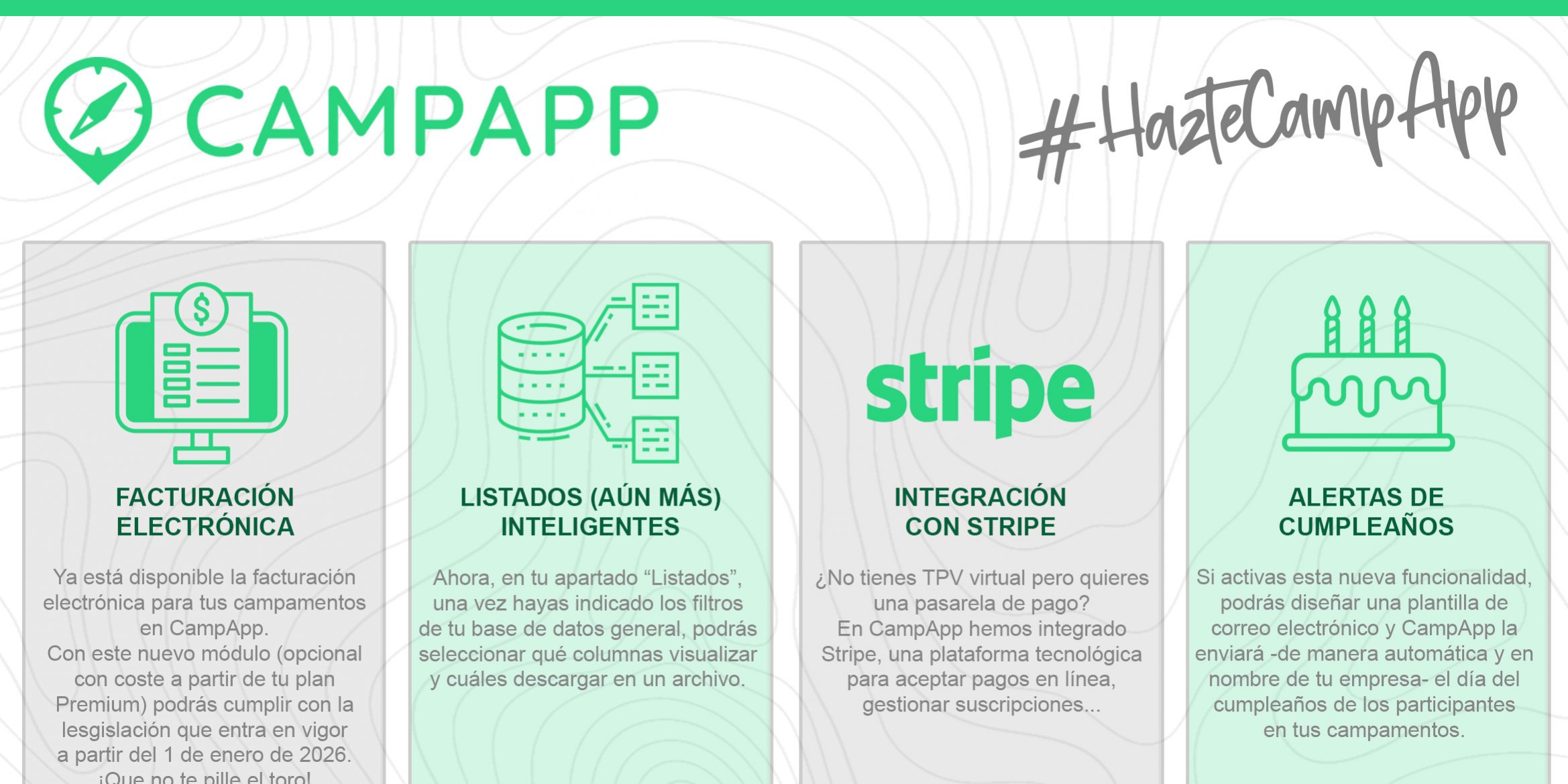 Ya está disponible la facturacion electrónica para tus campamentos en CampApp.