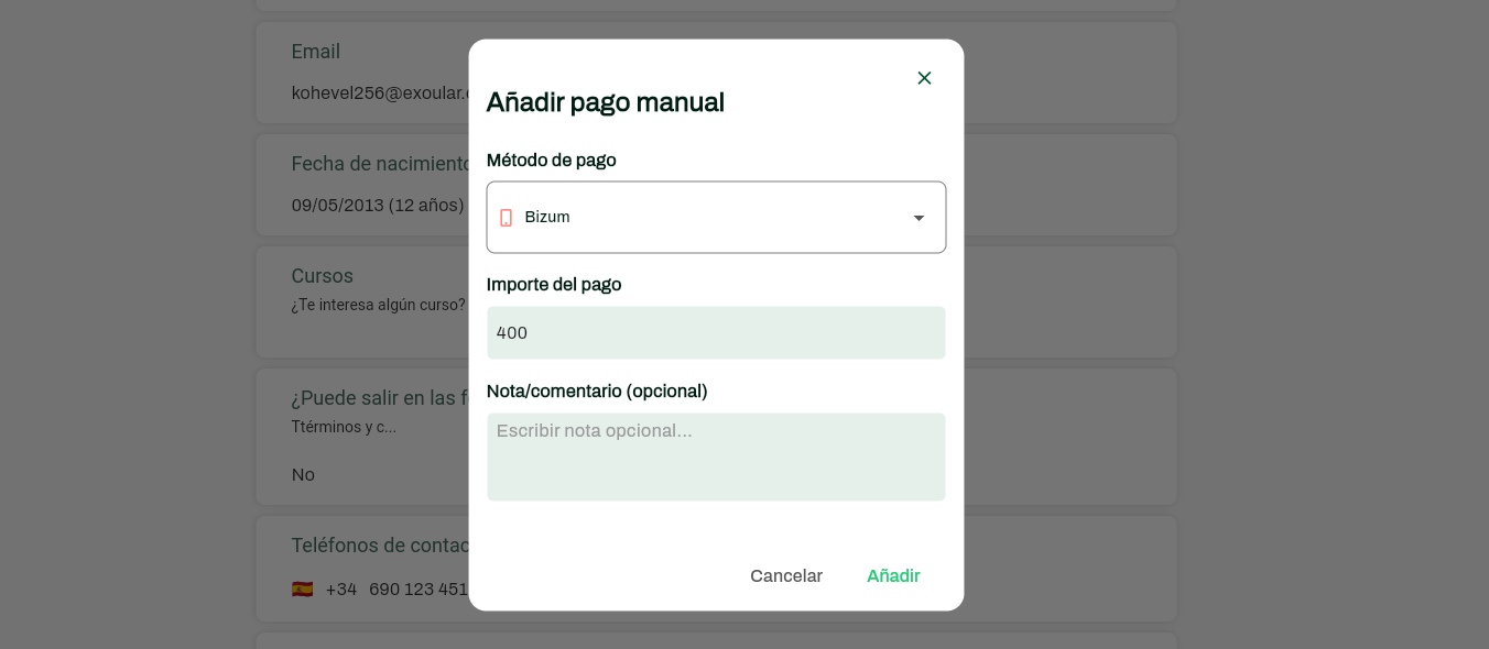A veces los pagos no se hacen a través del TPV virtual y tenemos que registrarlos a mano. Ahora puedes introducir la forma de pago y hacer anotaciones sobre ella cuando esto ocurra.